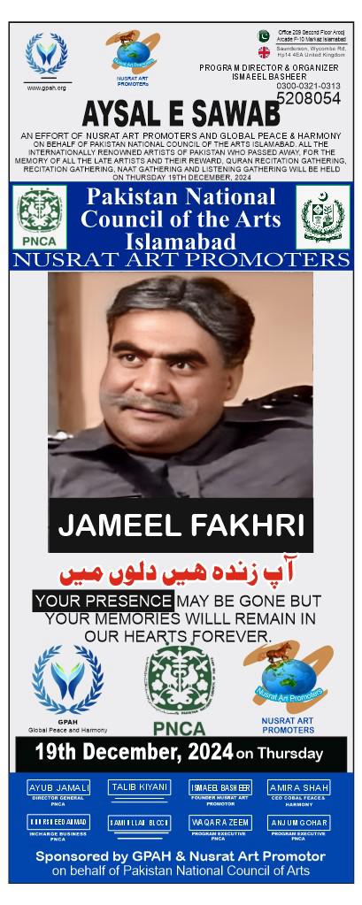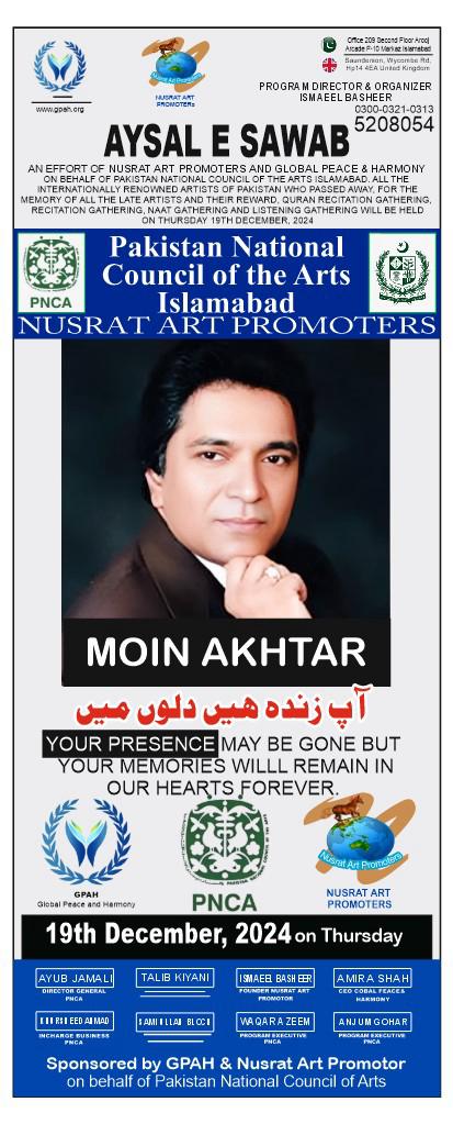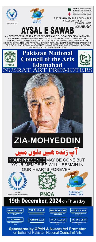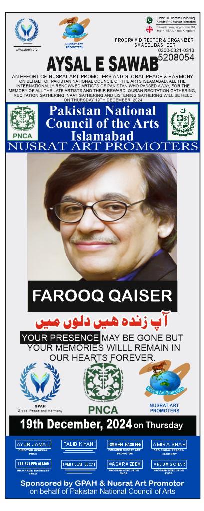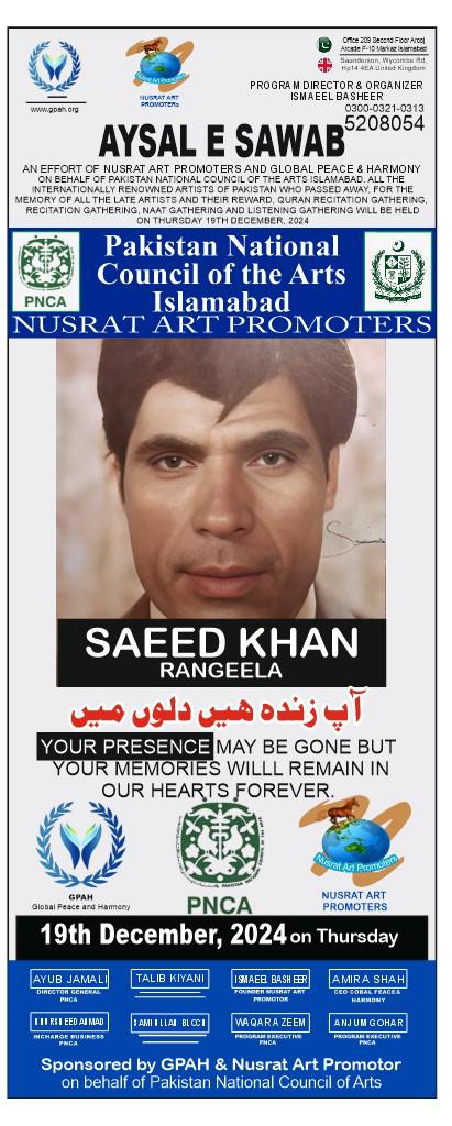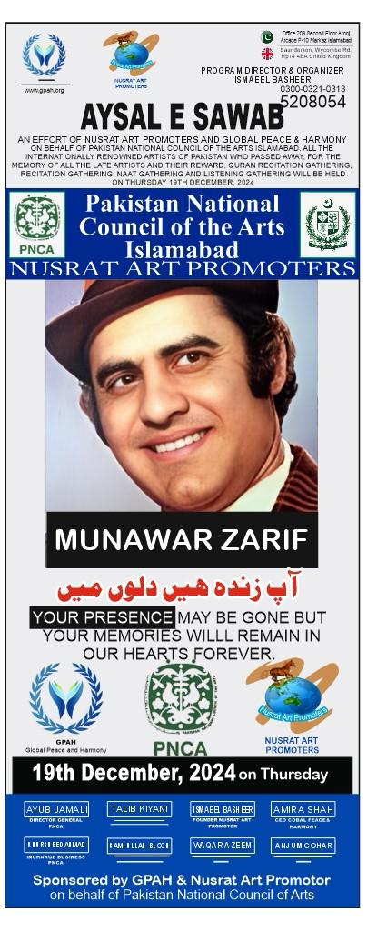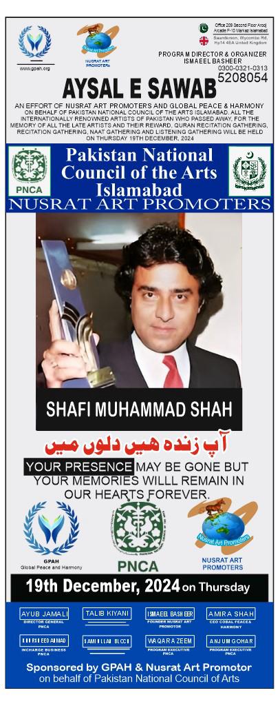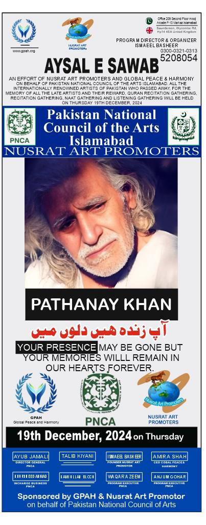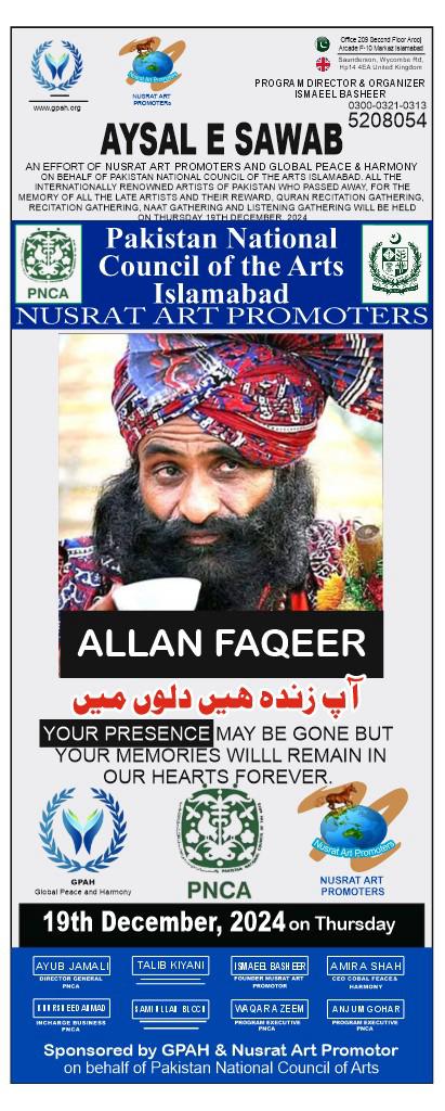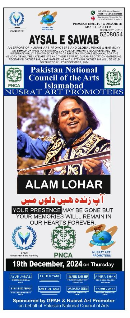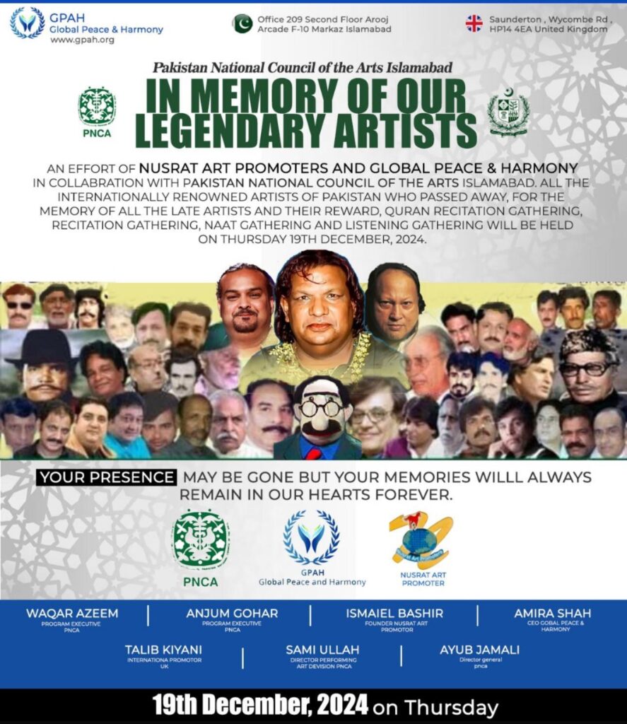 An effort of Nusrat Art Promoters and Global Peace & Harmony (GPAH Global Peace and Harmony) in collabration with Pakistan National Council of Arts, Islamabad.